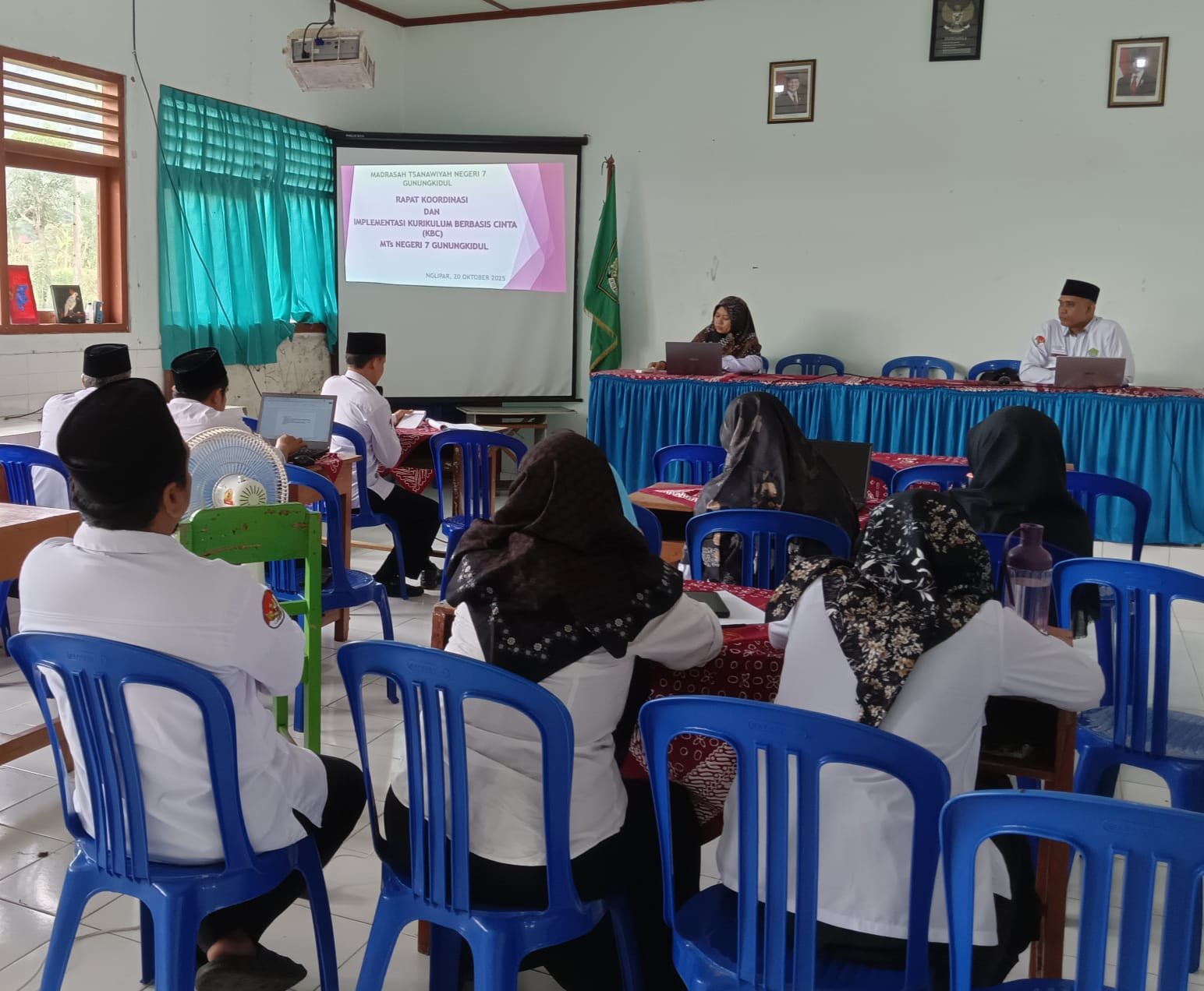 Nglipar (MTsN 7 Gunungkidul) — Menindaklanjuti kegiatan Workshop bertema Kurikulum Berbasis Cinta (KBC) bagi Kepala dan Waka Kurikulum MTs se-Kabupaten Gunungkidul, MTsN 7 Gunungkidul mengadakan kegiatan diseminasi pada Senin, (20/10/2025) dengan peserta seluruh tenaga pendidik madrasah.