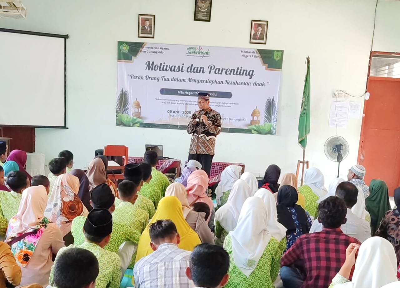 Nglipar (MTsN 7 Gunungkidul) – Dalam rangka meningkatkan semangat belajar bagi siswa kelas 9, MTsN 7 Gunungkidul mengadakan kegiatan Motivasi dan Parenting dengan tema peran orang tua dalam mempersiapkan kesuksesan anak yang bertempat di madarasah setempat pada Rabu (9/4/2025). Adapun tujuan kegiatan ini untuk meningkatkan semangat belajar dan membangun koneksi antara madrasah dan orang tua.