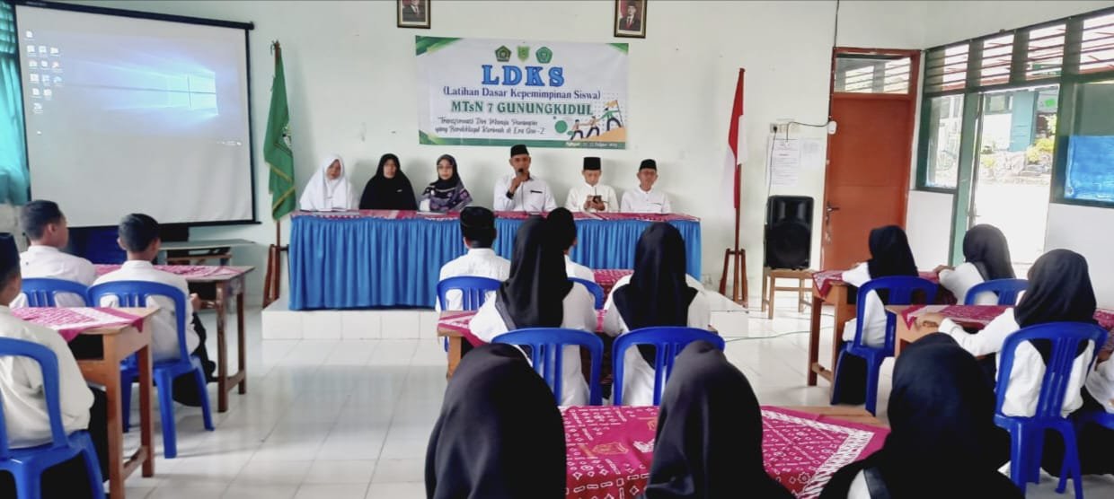 Nglipar (MTsN 7 Gunungkidul) – Latihan Dasar Kepemimpinan Siswa (LDKS) bagi Pengurus OSIS MTsN 7 Gunungkidul periode 2025/2026 dilaksanakan pada Rabu–Kamis (23–24/10/025) di dua lokasi, yakni MTsN 7 Gunungkidul dan Telaga Jonge, Semanu, Gunungkidul. Kegiatan ini bertujuan untuk melatih keterampilan dasar kepemimpinan serta menumbuhkan rasa tanggung jawab dan solidaritas di kalangan pengurus OSIS.