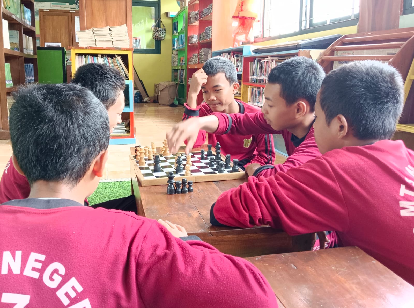 Nglipar (MTsN 7 Gunungkidul) – Sejumlah siswa MTsN 7 Gunungkidul memanfaatkan waktu istirahat dengan bermain catur di perpustakaan madrasah pada Selasa (16/12/2025). Melalui permainan catur, para siswa dapat mengasah kreativitas, khususnya dalam mencari solusi dan menyusun kombinasi langkah yang tepat dalam setiap permainan.
