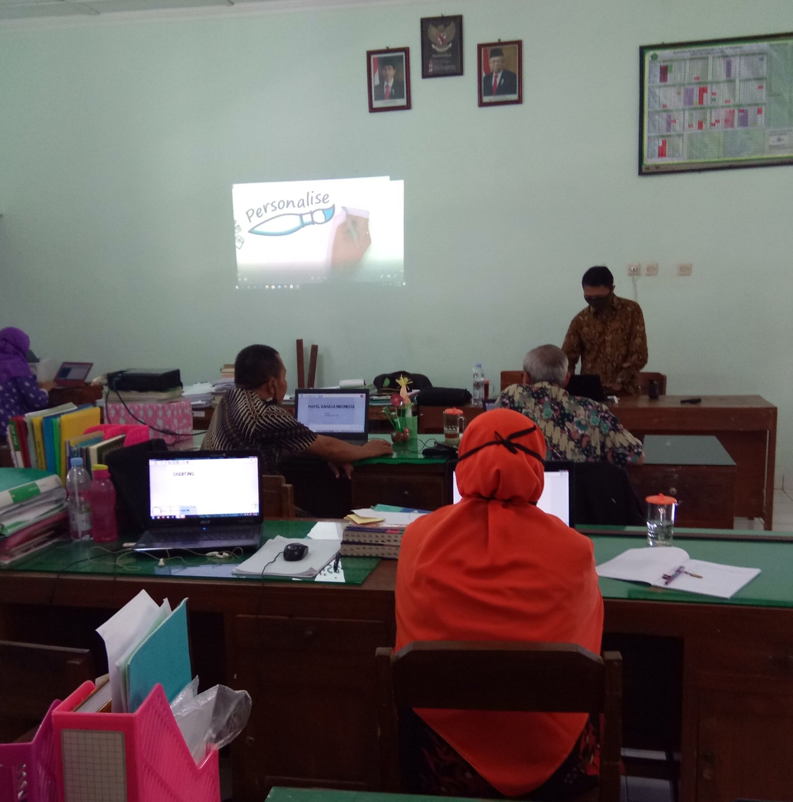 Nglipar (MTsN 7 Gunungkidul) – Berdasarkan Surat Edaran Kantor Wilayah Kementerian Agama Daerah Istimewa Yogyakarta Nomor : B-1820/Kw.12.2/1/PP.00/07/2020 Tentang Edaran Awal Tahun Pelajaran 2020/2021 yang melaksanakan belajar dari rumah (BDR ) secara daring sesuai kondisi Madrasah, maka para tenaga pendidik di MTsN 7 Gunungkidul mengadakan workshop pembuatan video pembelajaran di era new normal yang bertempat di Lab IPA dengan menghadirkan tutor Hendi dan diikuti oleh semua guru, Sabtu (11/7/2020).